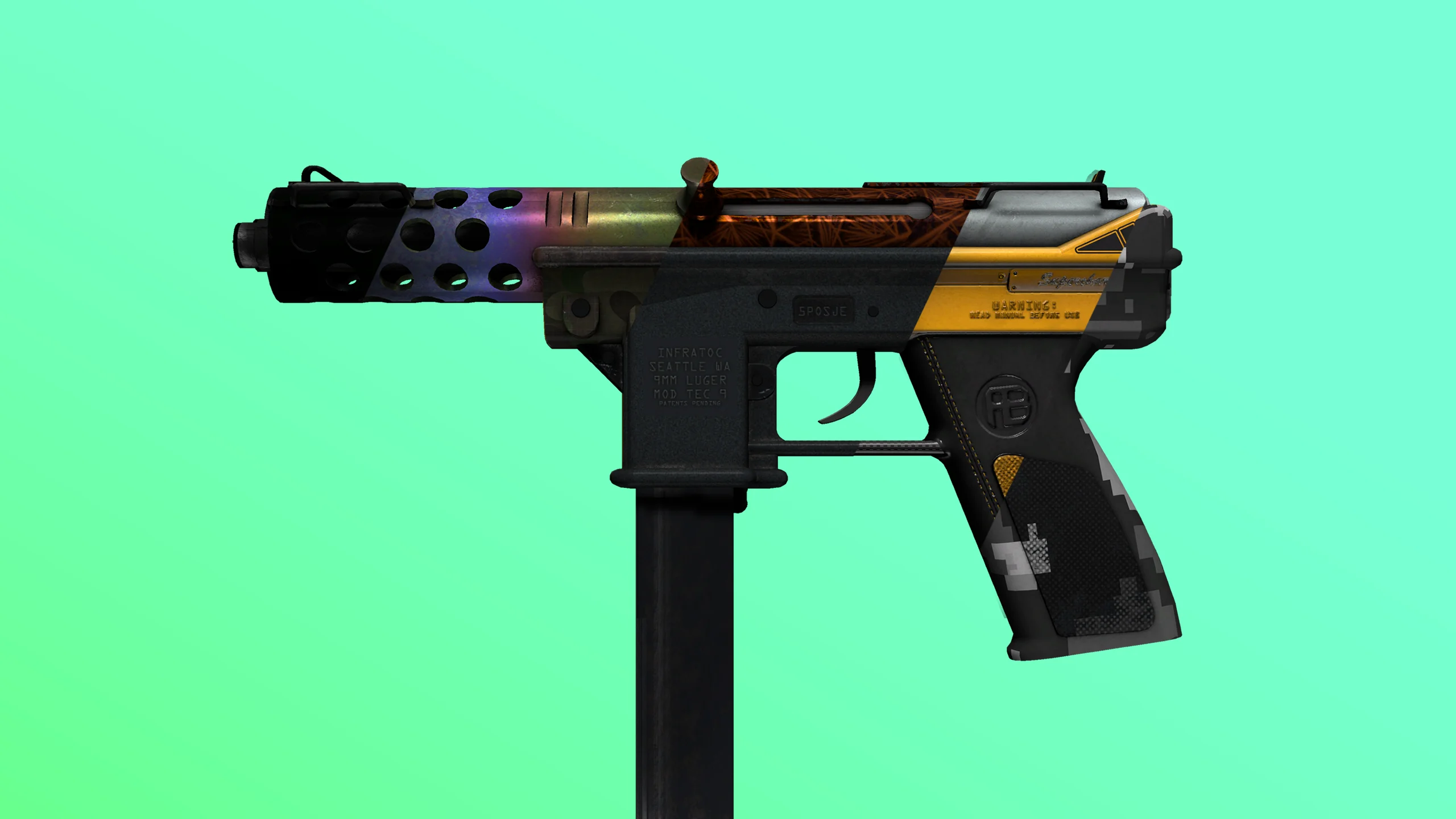 The Tec-9 | Fubar was first introduced to CS:GO 4 years ago, on December 6th, 2018. You can get yourself one by opening a Danger Zone Case container. The skin is also part of the The Danger Zone Collection. It was created by the community designer "𝓜𝒂𝒓𝒅𝒖𝒌". It's an interesting mix between camouflage and a bit of fade design.