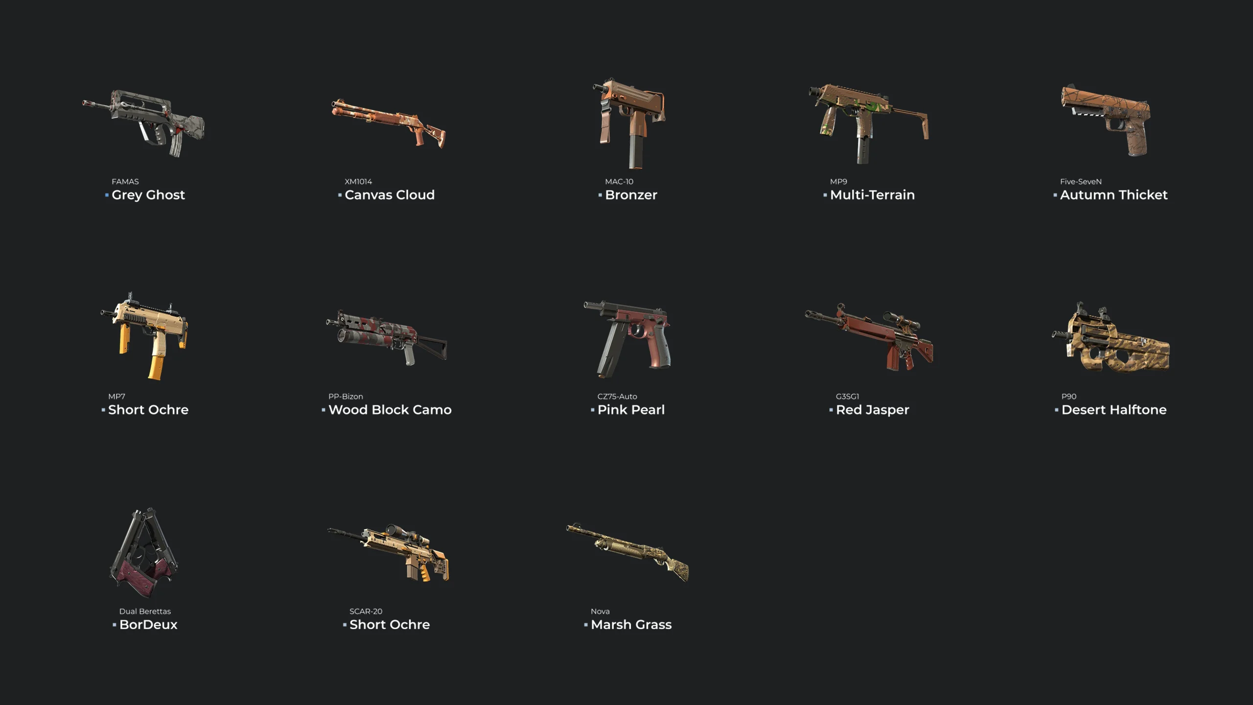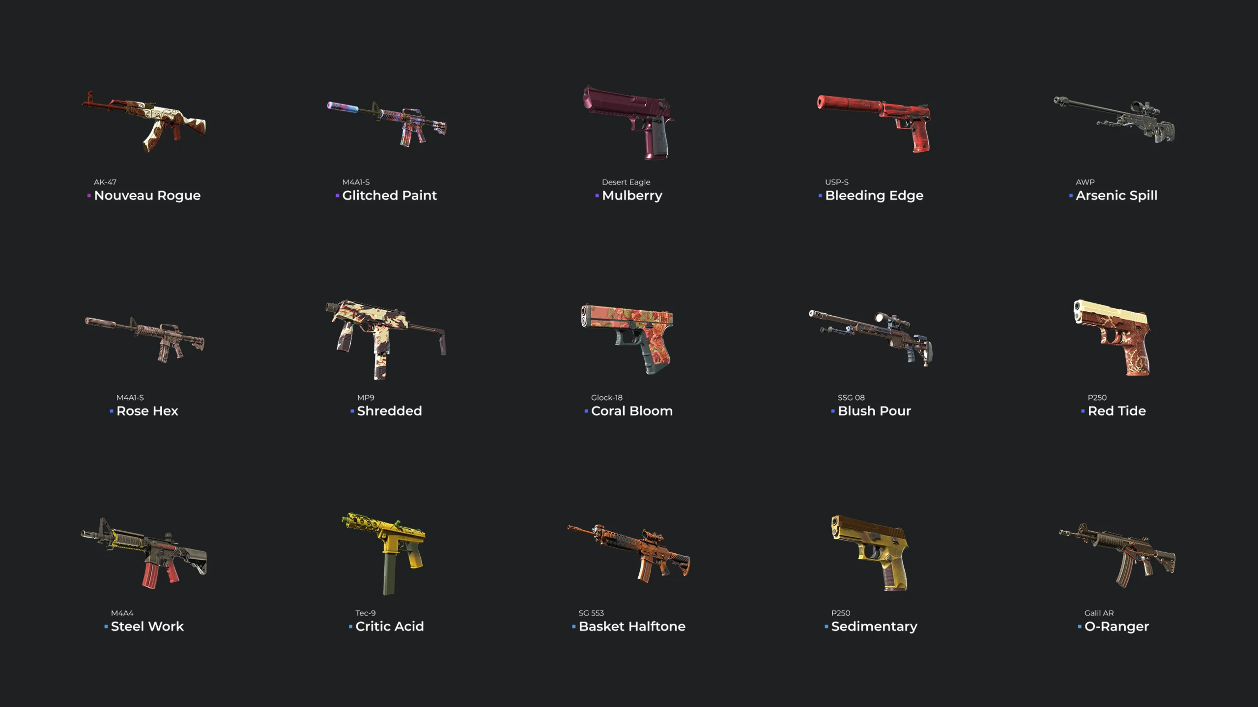 Die Kollektion "Radiant" beinhaltet 28 Skins und wurde am 31. März 2025 mit dem "Spring Forward" Update veröffentlicht. Die meisten Skins der Kollektion "Radiant" orientieren sich an einem futuristischen, industriellen, metallic Stil. Aktuell können alle Skins der Kollektion "Radiant" durch das wöchentliche Drop-System oder Trade-Ups erlangt werden.